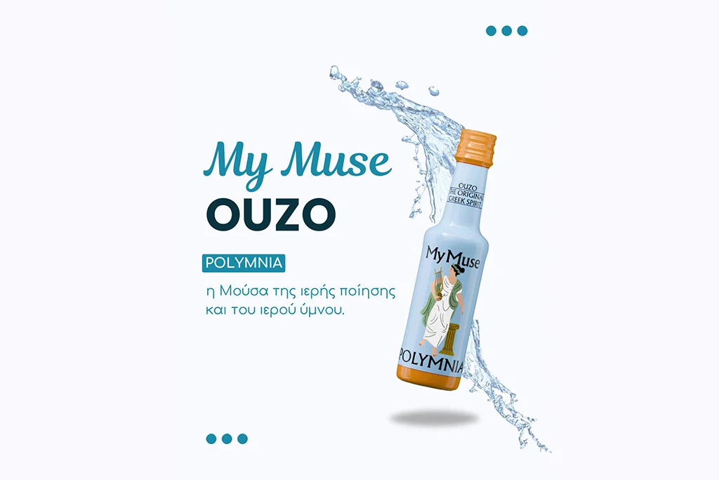 MyMuse®:Discover the new collectible ouzo series MyMuse®, a unique creation inspired by the 9 Muses of antiquity. Each 50ml bottle highlights the uniqueness and role of a Muse, combining tradition with modern aesthetics.